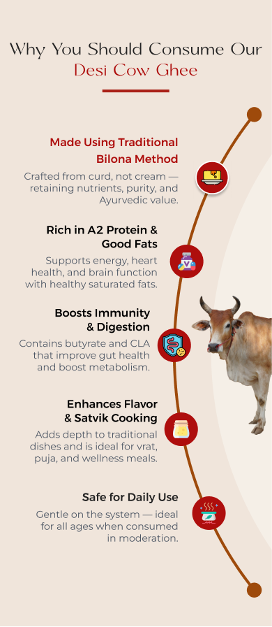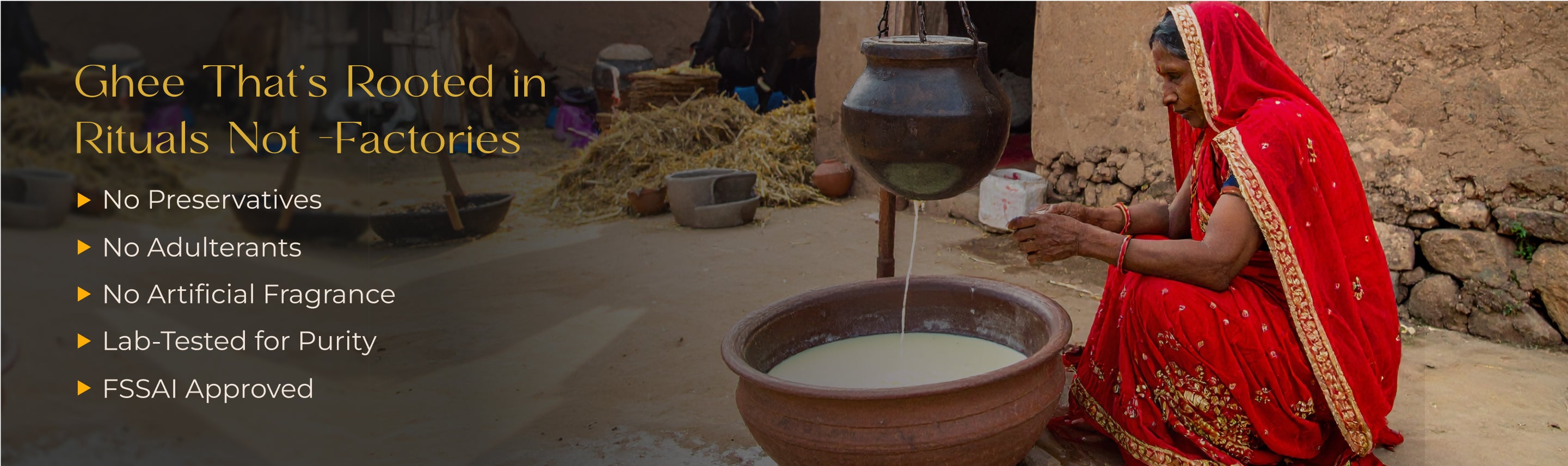 Each batch is lab-tested. From local gaushalas in Uttar Pradesh to your kitchen – every jar supports rural farmers & slow food movement.