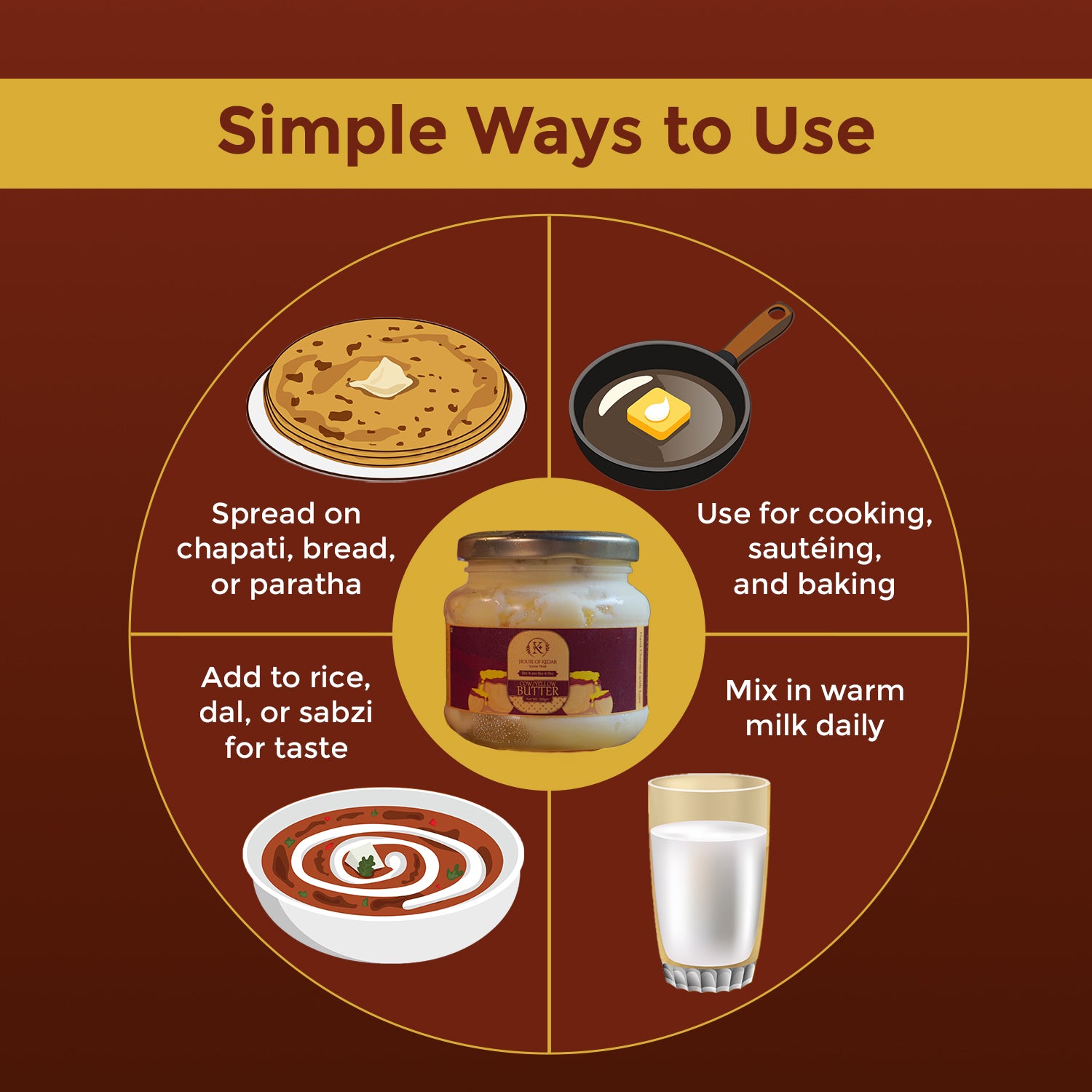 Yes! It’s ideal for sautéing, baking, tadkas, or melting over rotis.